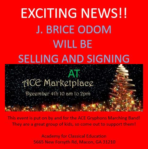 I’m excited to get the chance to sell and sign books in person at the ACE Marketplace on December 4th!! The event is put on by the Academy for Classical Education Marching Band!! Its a great group of talented kids! So come out and support them, say hello, and buy a book or two or three!!!!! I will see you there!!!